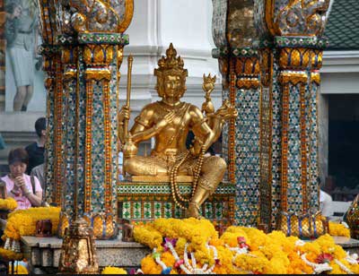 The famous golden Buddha statue, is enshrined here. The statue, rich with solid gold, is approximately 3.1 metres tall and 3.8 metres wide.